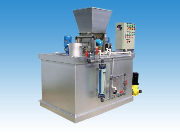 SLTF連續(xù)式溶液制備裝置是一個自動、連續(xù)式的溶配加藥裝置,配置溶液范圍為0-5000升/小時,濃度為0.1%-10%。配制溶液從配制槽經熟化槽再進入儲存槽,由加藥泵送至混合池中,根據投加濃度調好出液量和進水量,保證系統(tǒng)恒定運行,工作過程中無需再人工調節(jié)控制;具有自動化程度高、性能穩(wěn)定、工作可靠、操作、簡單明了;配制槽和熟化槽均設置多槳葉攪拌器,充分保證藥劑的稀釋和熟化。